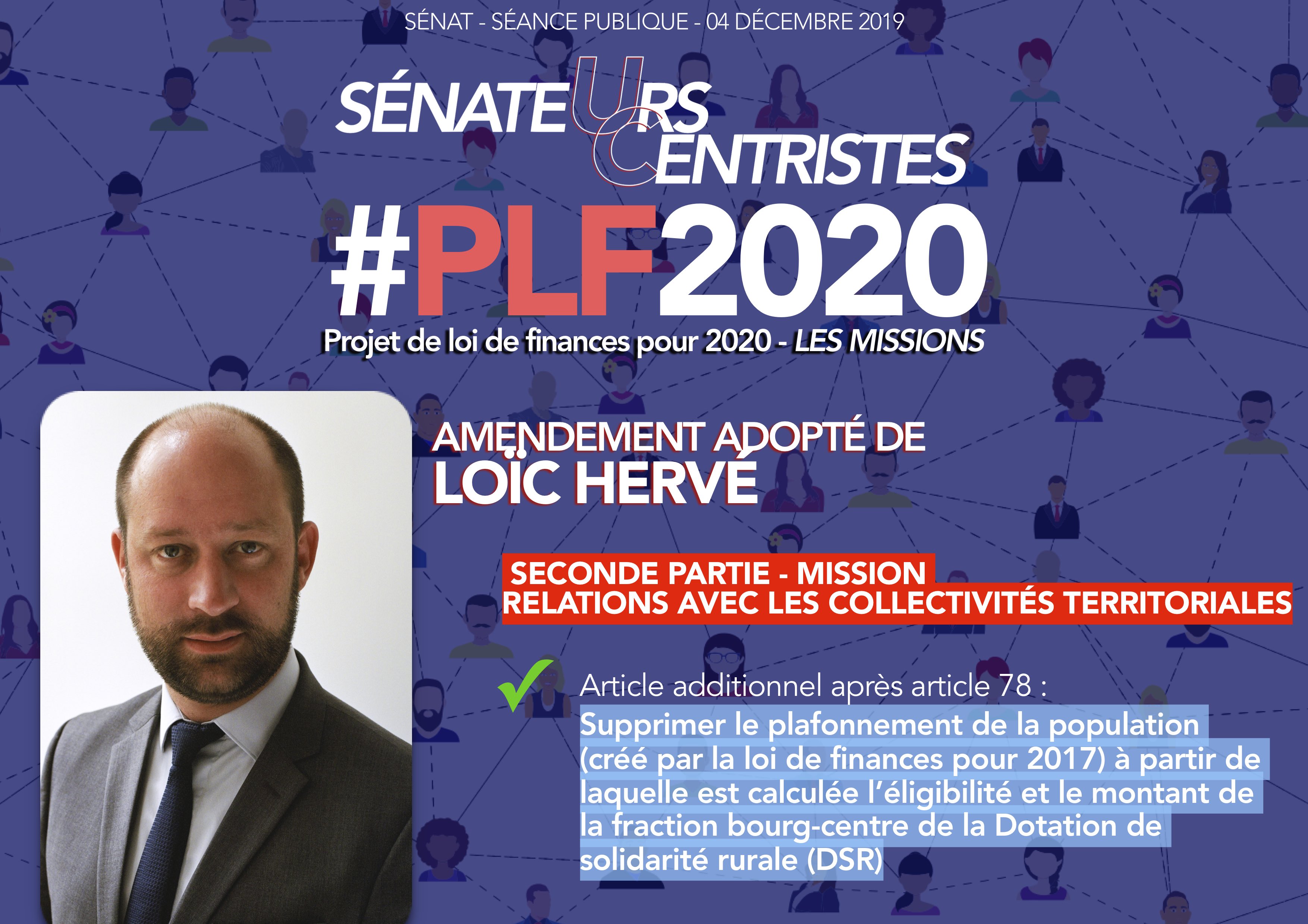 «Projet de loi de finances pour 2020 : Le groupe Union Centriste a voté les crédits de la mission relations avec les collectivités territoriales»