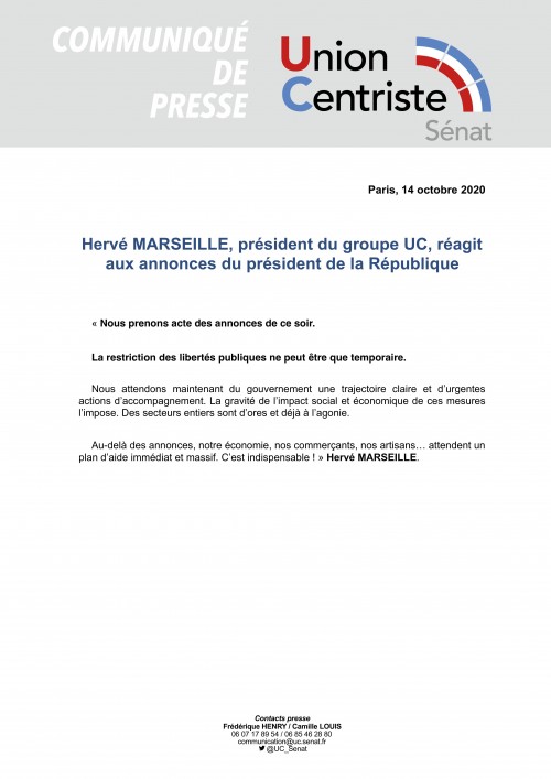 «Hervé MARSEILLE, président du groupe UC, réagit aux annonces du président de la République»