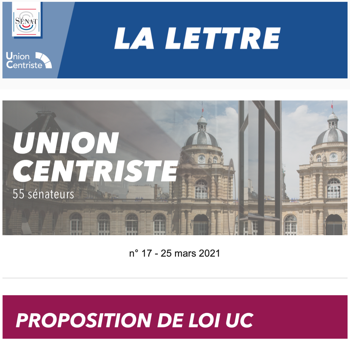 Françoise Férat, Nathalie Goulet, Valérie Létard, Catherine Morin-Desailly, Vincent Capo-Canellas, Vincent Delahaye, Hervé Marseille, Annick Billon, Michel Canévet, Françoise Gatel, Anne-Catherine Loisier, Jean-François Longeot, Olivier Cadic, Catherine Fournier, Denise Saint-Pé, Jean-Pierre Moga, Michel Laugier, Laurent Lafon, Dominique Vérien, Pascal Martin, Jean-Michel Arnaud, François Bonneau, Philippe Folliot