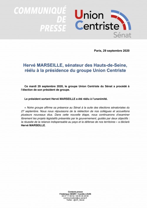 « Notre groupe affirme sa présence au Sénat à la suite des élections sénatoriales du 27 septembre. Nous nous réjouissons de la réélection de nos collègues et accueillons plusieurs nouveaux élus. Dans cette nouvelle étape, nous continuerons d’examiner librement les projets législatifs présentés par le gouvernement, guidés par deux objectifs : la réussite de la relance indispensable au pays et la défense de nos territoires » a déclaré Hervé MARSEILLE.